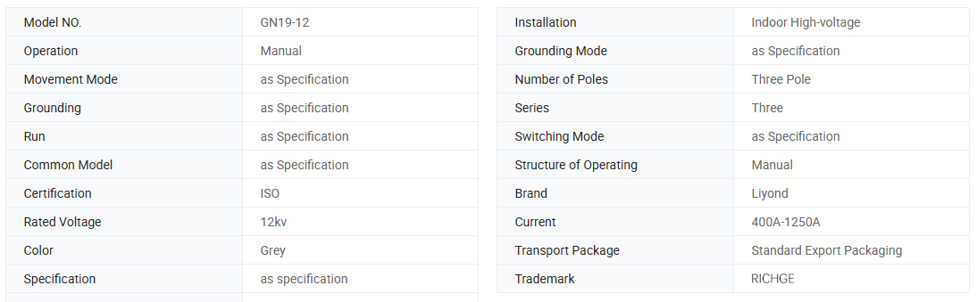 Les sectionneurs haute tension d'intérieur des séries GN19-12, 12C (ci-après dénommés sectionneurs) sont des appareils intérieurs avec une tension nominale de 12 kV, CA triphasé 60 Hz, et sont utilisés pour diviser et fermer les circuits lorsqu'il y a de la tension et sans charge.