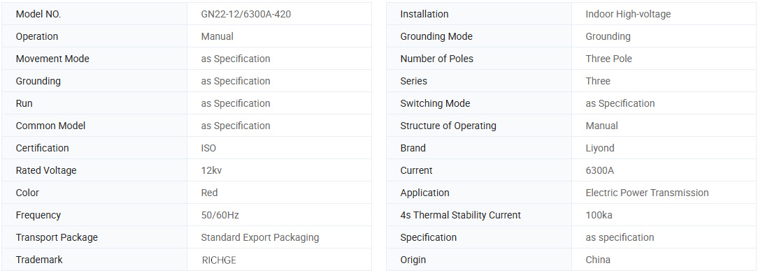 L'appareillage de commutation haute tension intérieur à sectionneur haute tension de la série GN22-12 (C) (D) est utilisé dans les systèmes électriques avec une tension nominale de 12 kV, 50 Hz et moins, pour connecter, déconnecter ou convertir des lignes sous tension mais sans charge.